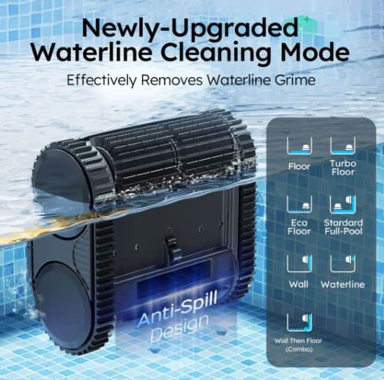 Powered by a triple motor system, the cleaner delivers strong suction and superior mobility throughout the pool. The advanced dual filtration system with fine HEPA filtration captures both large debris and microscopic particles.